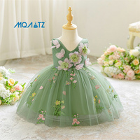 MQATZ新スタイル女の子ドレスアップリケメッシュプリンセスドレス刺繍Vネックドレス誕生日ウェディング子供用アップリケドレス