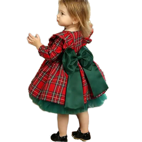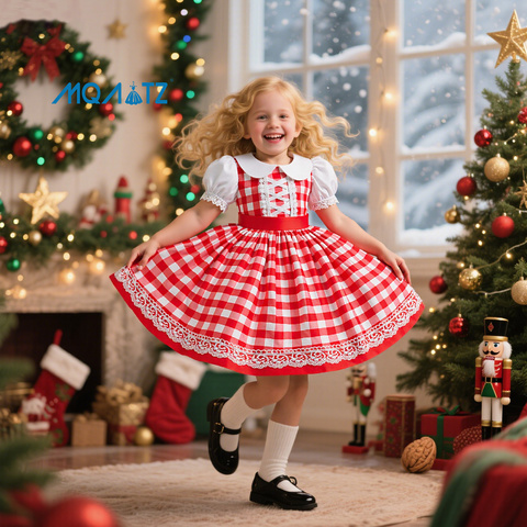 MQATZ最新半袖チェック柄のクリスマスドレス女の子用小さな女の子服ビッグボウ素敵な冬のブティックスタイル