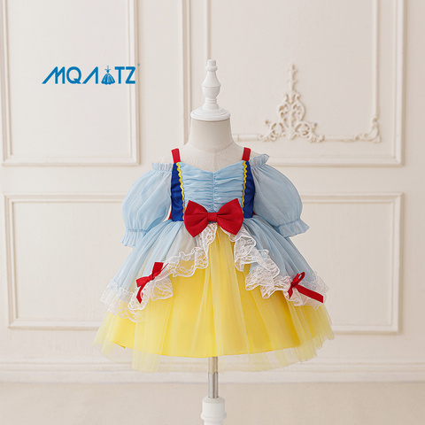 MQATZ yeni varış kız prenses mavi Cosplay kostüm kısa kollu doğum günü partisi kıyafeti çocuk süslü elbise için bebek cadılar bayramı