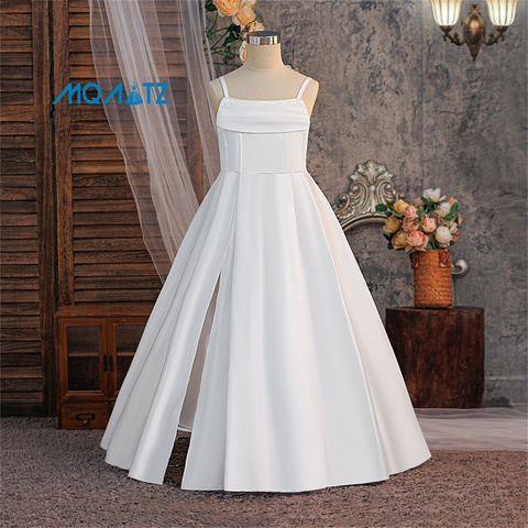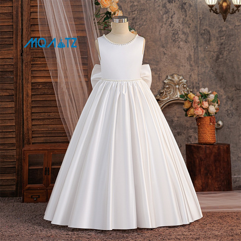 Новое элегантное белое платье MQATZ для девочек, с жемчугом, в стиле принцессы, из атласа, для свадеб и торжеств, детская одежда LP800