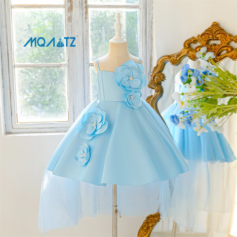 Новое синее платье MQATZ для девочек, с круглым вырезом, многослойное, в стиле принцессы, для дня рождения, летнее, с аппликациями, для девочек 4 лет, AL6093