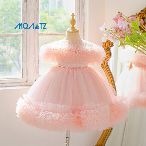 MQATZ Cute Girls Party Dress Vest with Floral Mesh & Pearl Fluffy One-Year-Old Princess Dress with Key Features