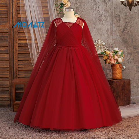 Детское платье-накидка MQATZ, сетчатое платье для девочек, праздничное платье из бисерного тюля, красное платье принцессы для вечерних мероприятий LP691